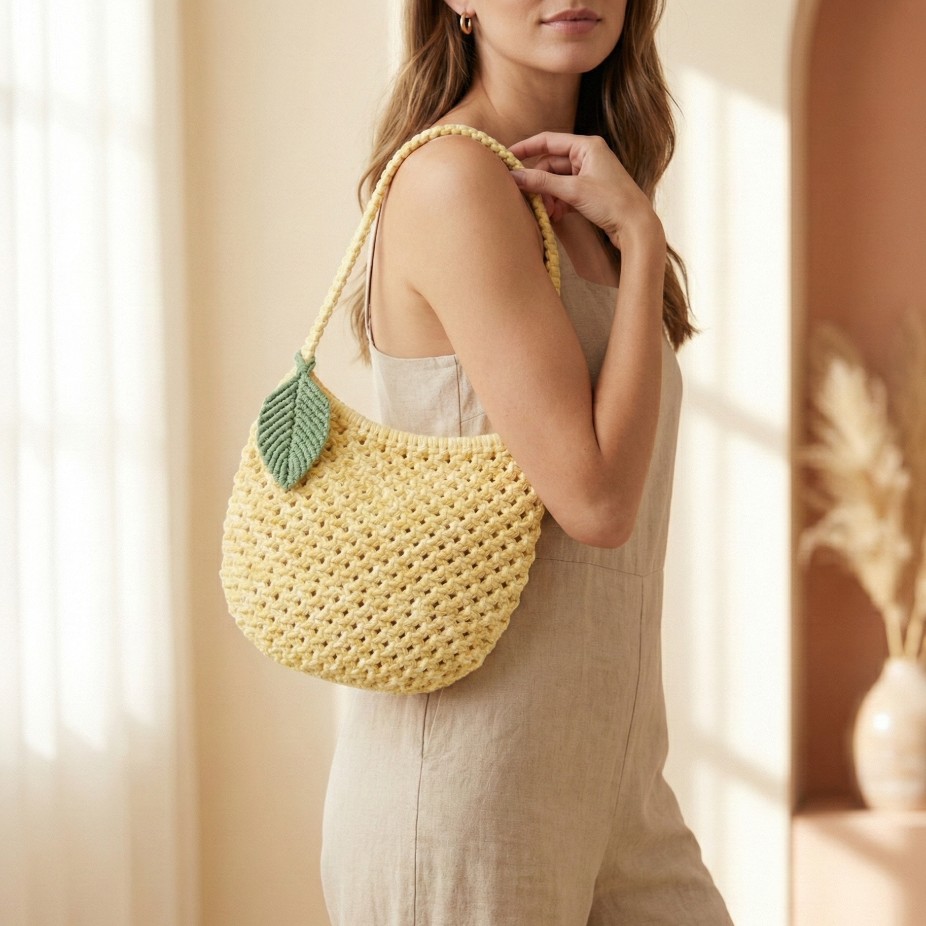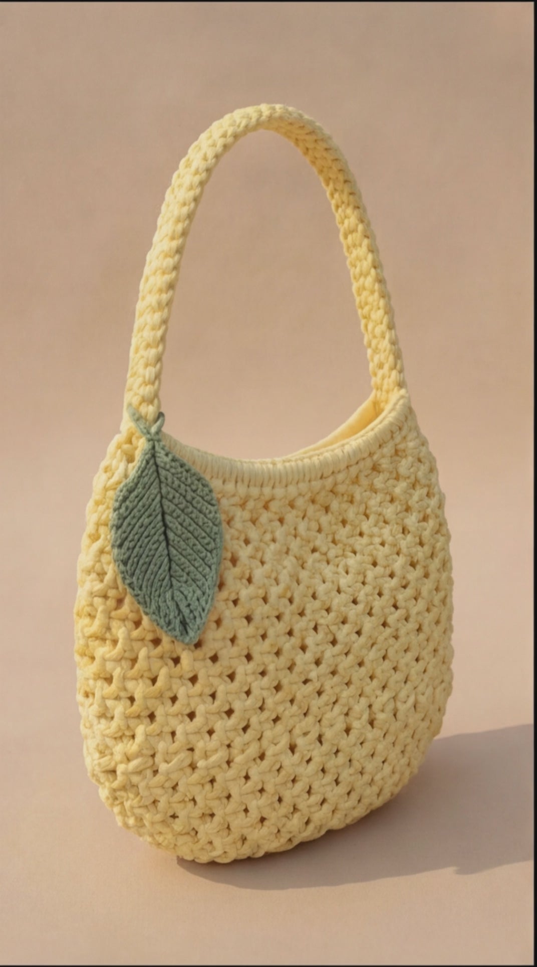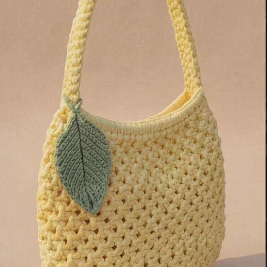 Fresh, soft, and effortlessly stylish — the Lemon Leaf Handbag is the perfect everyday crochet bag with a sunny charm. Handcrafted in a warm lemon-yellow tone and finished with a beautiful leaf detail, this bag adds a subtle statement to any outfit.
